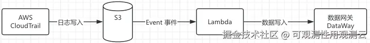 - S3 触发 Event 调用 Lambda 函数,通过 Datait 或者 DataWay 将数据上报到观测云平台(推荐通过 DataWay 直接上传,本文将主要介绍这种方式)