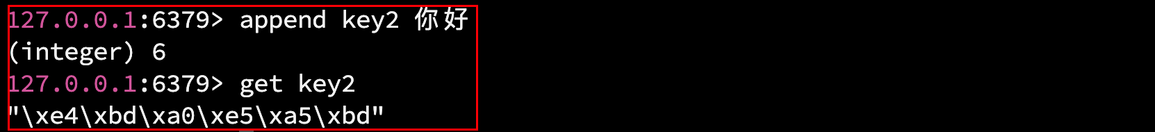 假如 append 的内容是中文, 那么通过 get 展示出来的就是在 utf8 编码下 "你好" 二进制数据的十六进制形式: