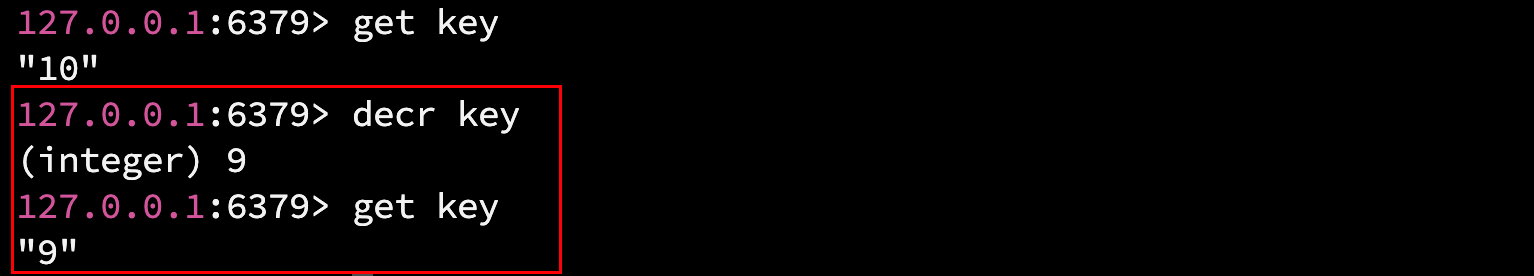 | decr key | 指定的 key 的值 -1 | O(1) |