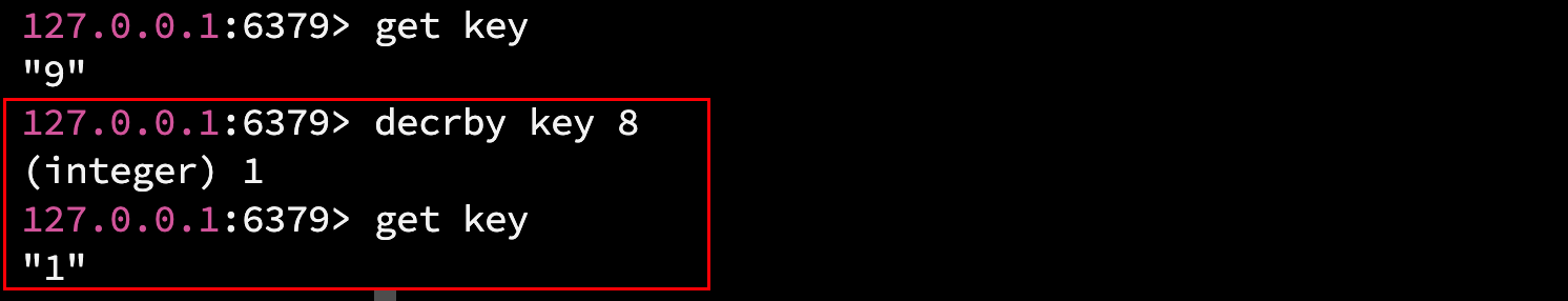 | decrby key n | 指定的 key 的值 -n | O(1) |