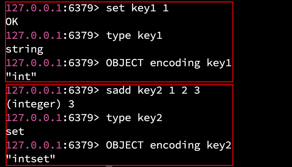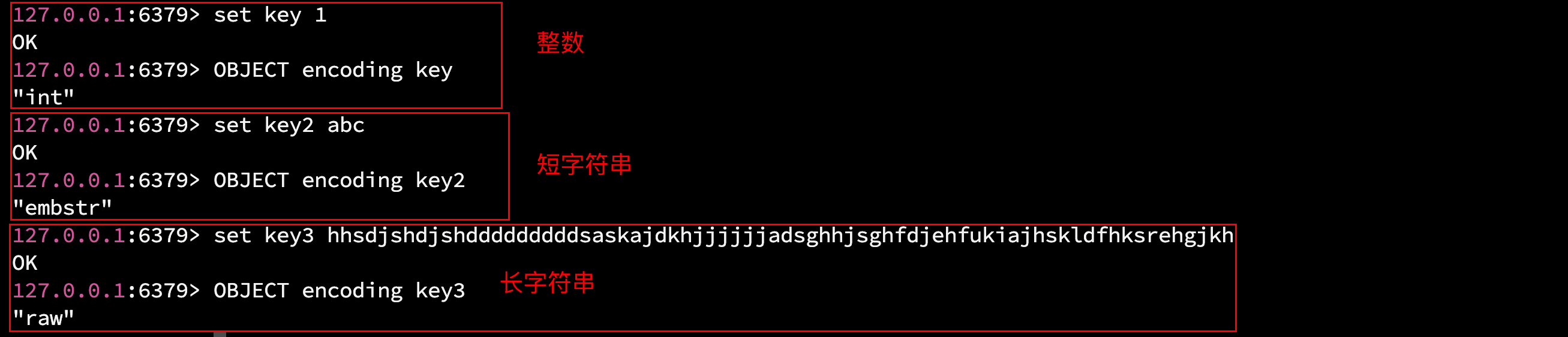 - int : 整数, 当 set 存入的 value 是整数时, 就会使用 int 来保存. (计数的场景)