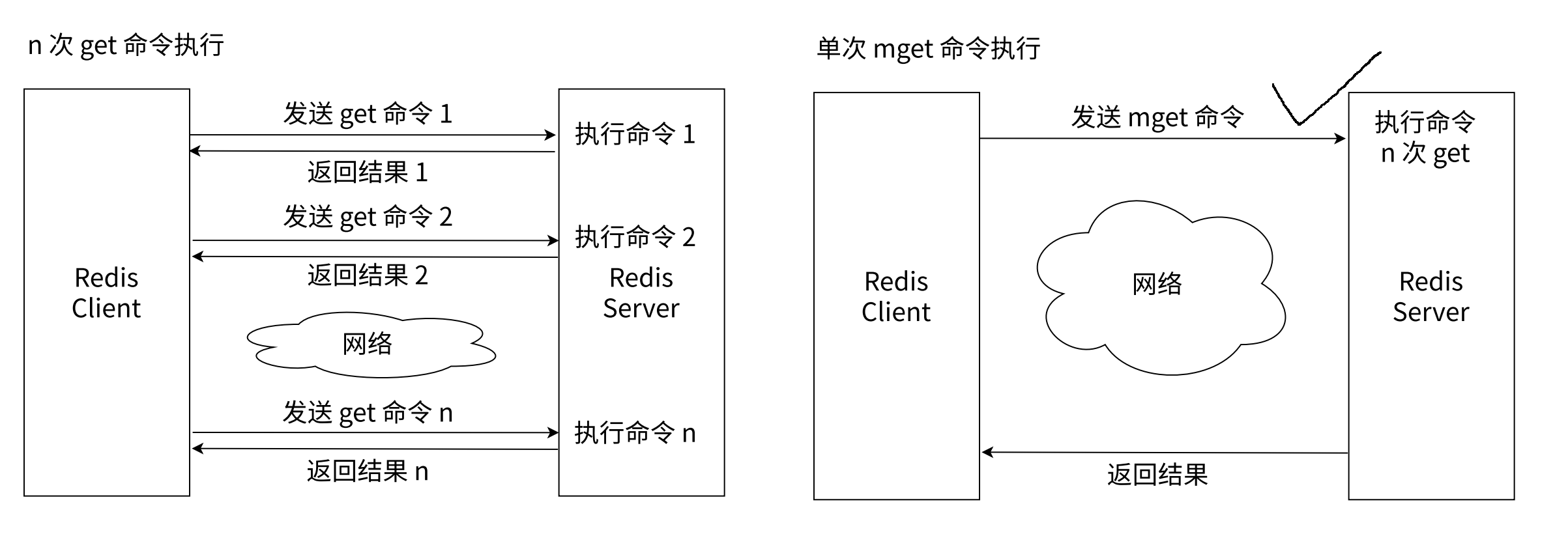 | mget key [key ...] | 批量获取 key 的值 | O(k), k 是键个数 |