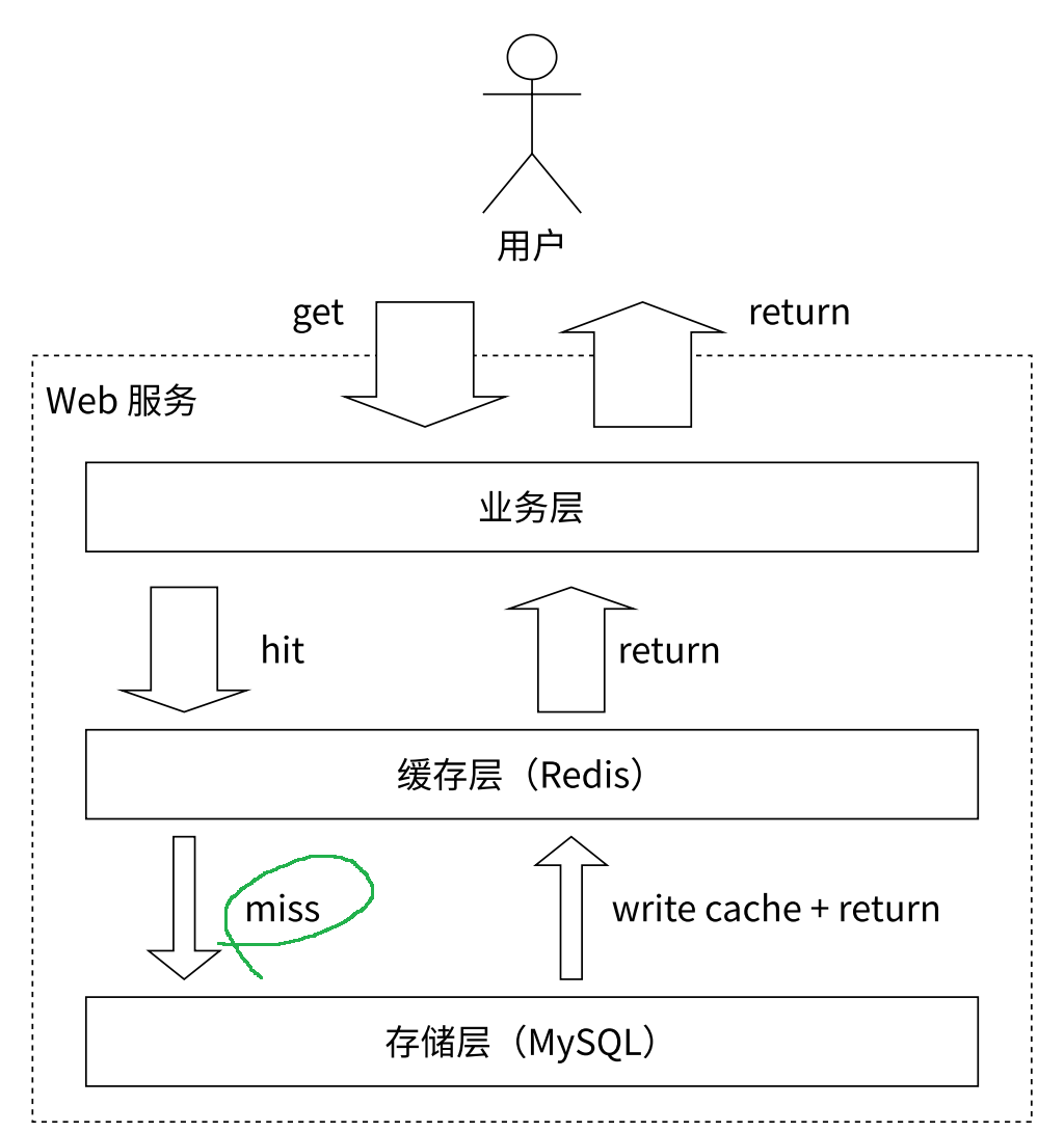 Redis 最常见是用作缓存, 把热点数据存到 Redis 中, 把全量数据存到数据库中, 应用服务器访问时, 先从 Redis 中查, 如果命中(hit)则直接返回. 如果没有命中, 则从数据库中查, 同时把查到的数据也存到 Redis 中.