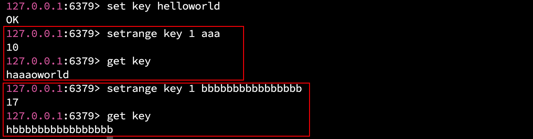 使用 setrange 命令, 从指定字节的位置开始, 替换/覆盖 value 原有字符串的一部分.