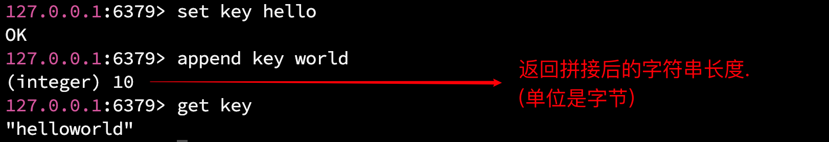 append 返回的字符串长度, 单位是字节(Redis 没有字符编码集, 在内部只按字节存储数据)