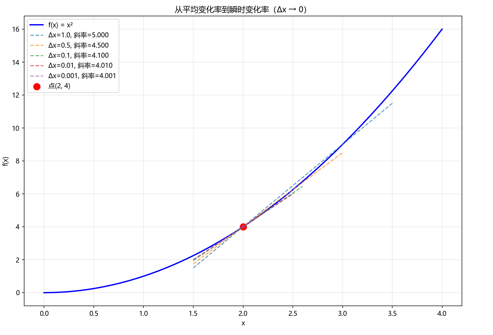 plt.title('从平均变化率到瞬时变化率(Δx → 0)')