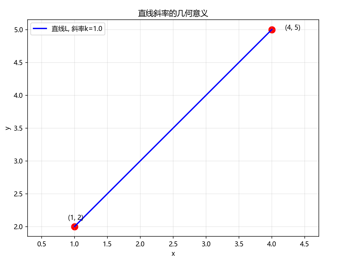 plt.plot([x0, x1], [y0, y1], 'b-', linewidth=2, label=f'直线L, 斜率k={slope}')