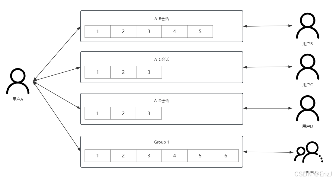 - 历史消息查询高效:可以对 user_id, group_id, timestamp 建索引,实现分页拉取历史消息。
