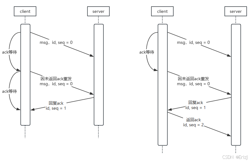 // 整个流程的核心目标是确保客户端确实收到了消息,才把消息投递给业务处理