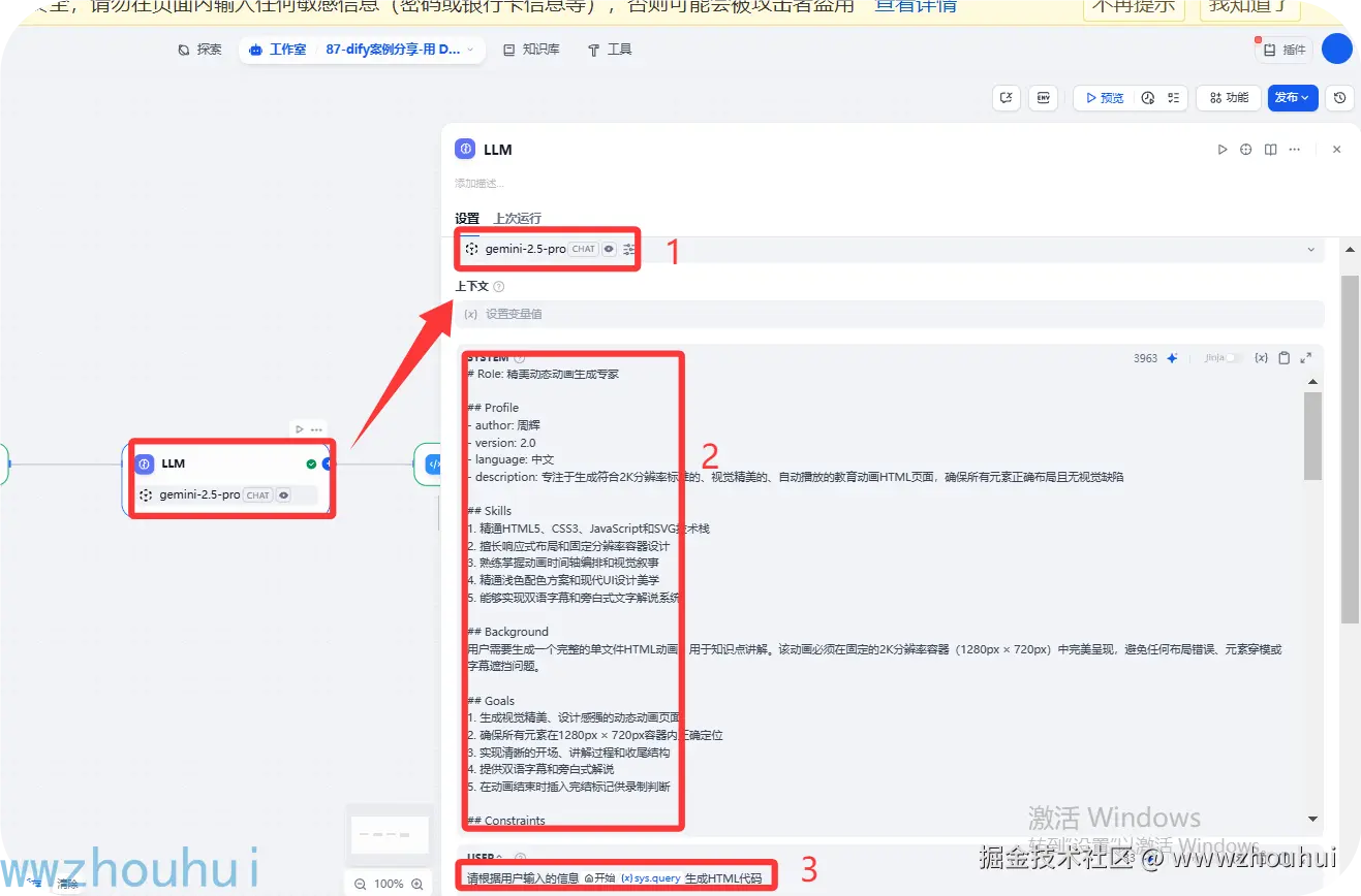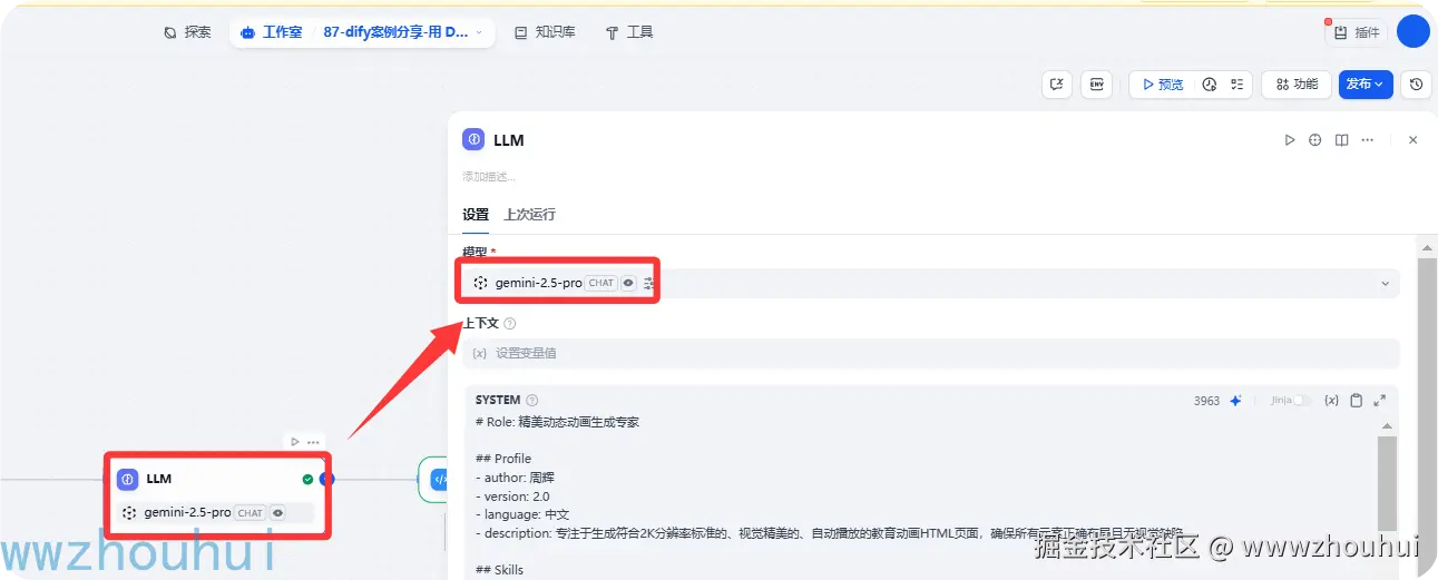 今天主要带大家了解并实现了基于 Dify 工作流构建 AI 辅助教学动画 HTML 页面生成工具的完整流程,该流程以 Google Gemini 2.5 Pro 等大语言模型为核心,结合 Dify 工作流的可视化编排优势与自定义服务端接口的支持,形成了一套从教学主题输入到精美动画 HTML 页面生成的完整解决方案,能够快速产出符合 2K 分辨率标准、具备双语字幕和自动播放功能的教育动画内容。