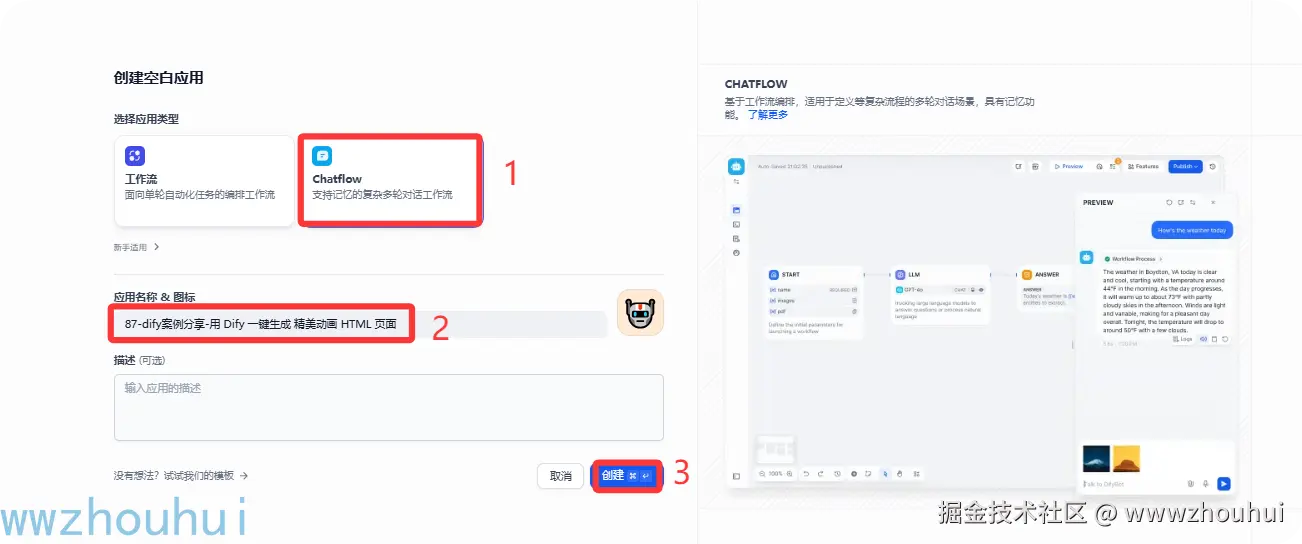 我们打开工作流预览按钮。聊天窗口中输入如下提示词