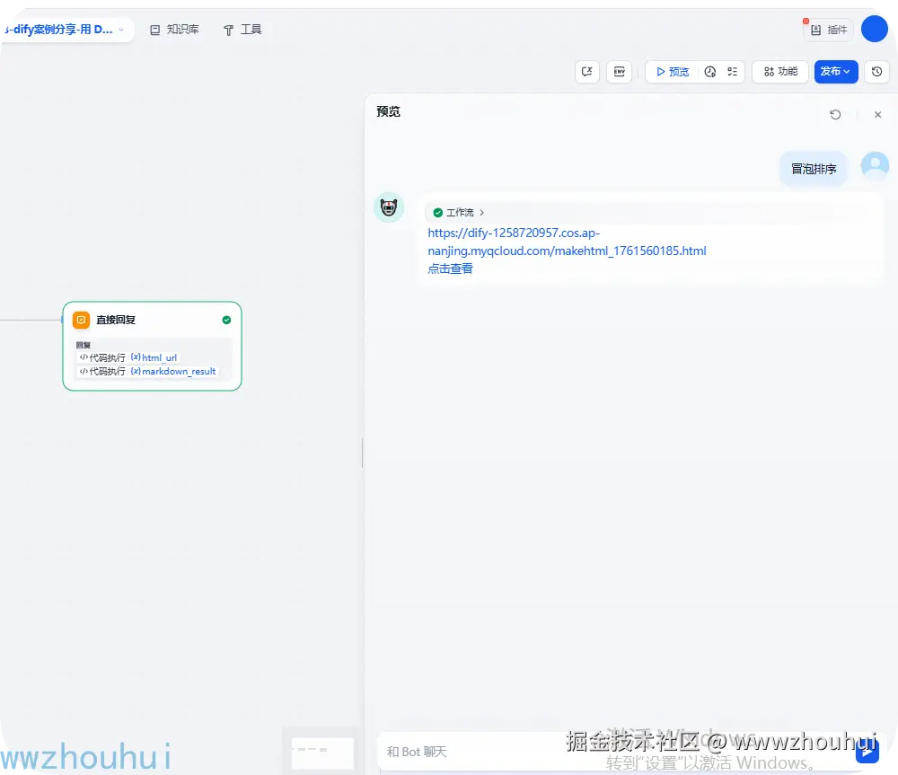 这个直接回复我们这里输出2个值,一个是代码执行返回的URL ,一个是URL markdown地址