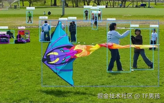 它要把上下文压缩,它就需要对这个世界有个基础的认识。例如,让它在下面这张图片上框出看到的物体,它能清晰地找到"人"、"椅子"等物体。