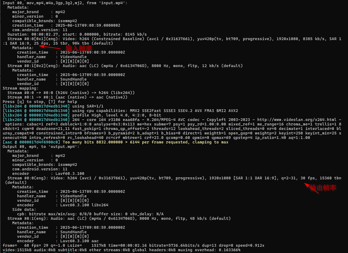 将输入文件中视频帧率调整为30并输出