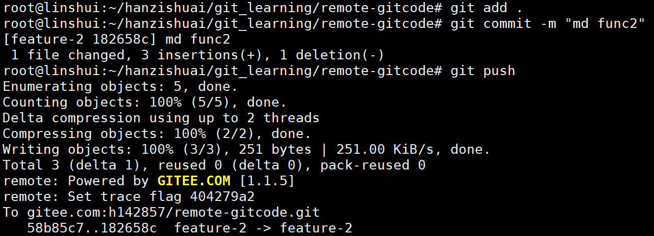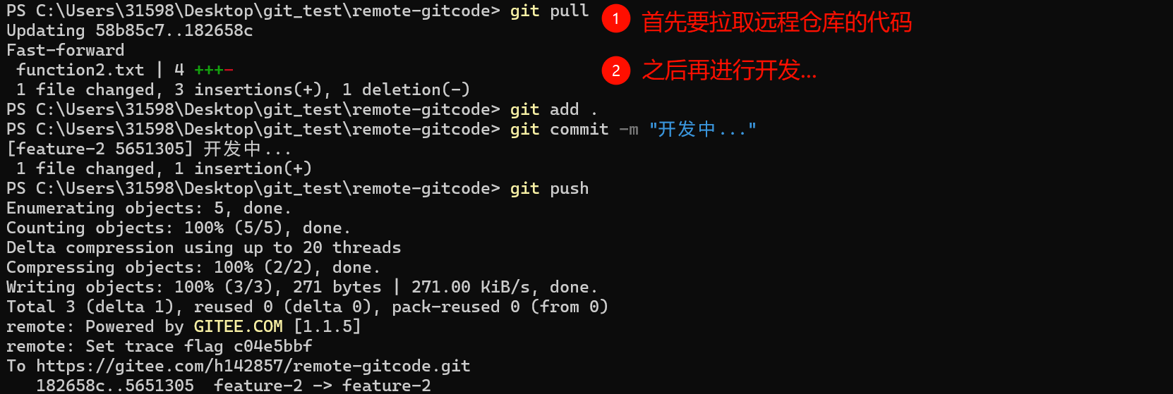 - 在你的电脑上新增 feature-2 分支,并与远程仓库的 feature-2 建立连接