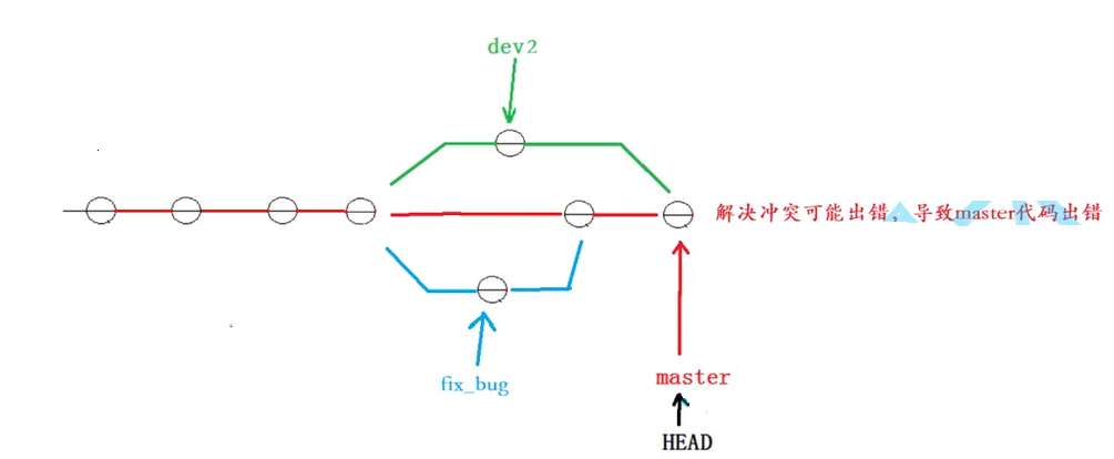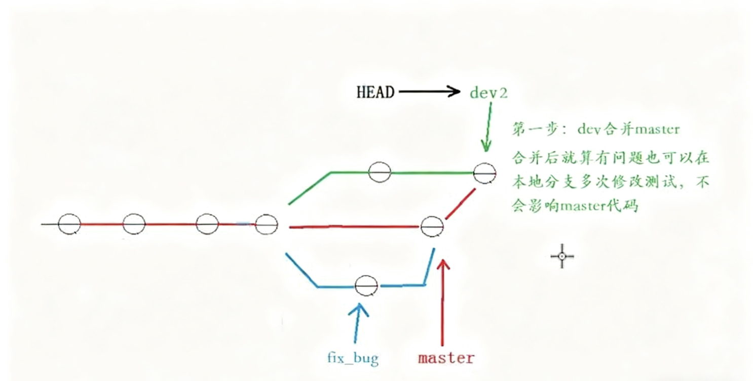 - dev:merge master (有冲突在 dev 分支进行解决)