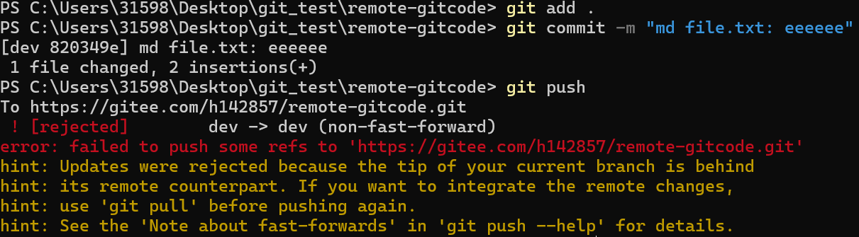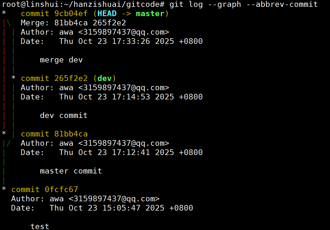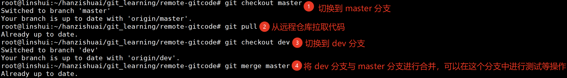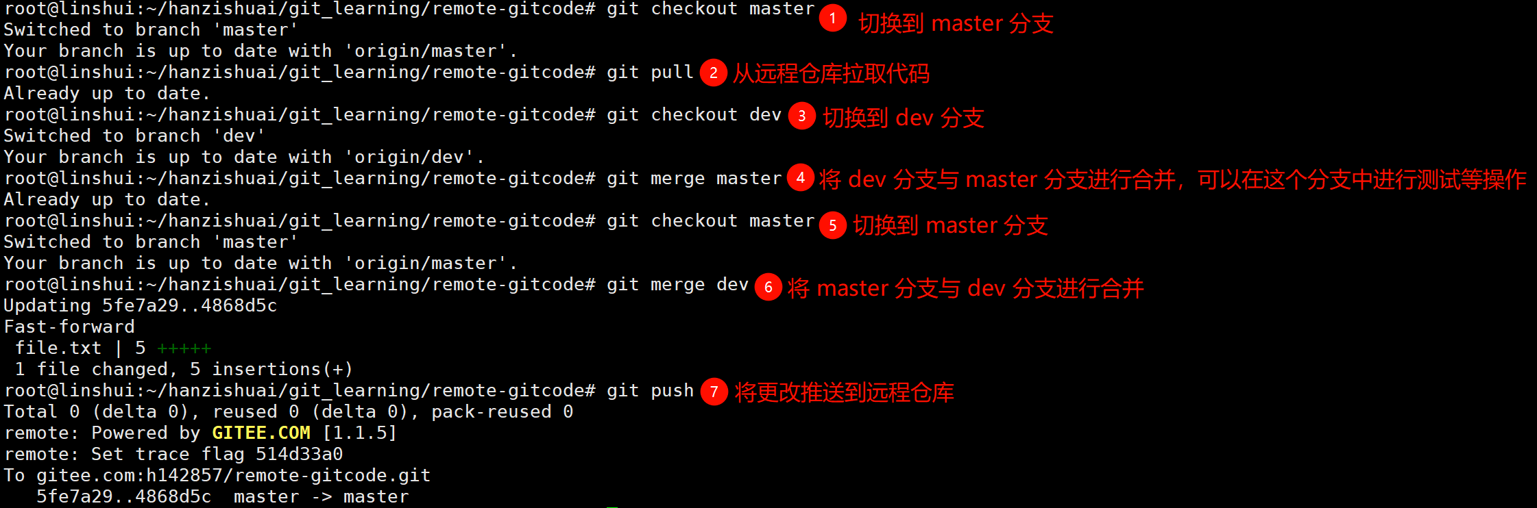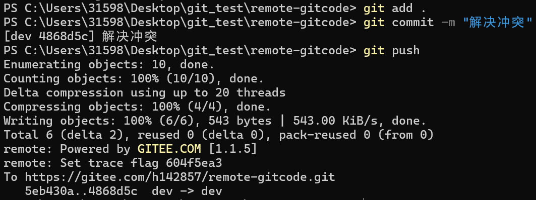 别忘了将 dev 分支的修改 push 到远程仓库中。