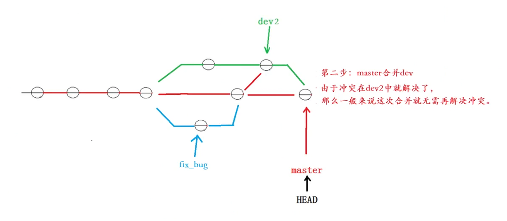 比如说开发人员1在 feature-1 分支下进行开发,开发人员2在 feature-2 分支下进行开发。此时他们各自向远程仓库推送代码就不会出现冲突了。但是在之后与 master 分支进行合并时,可能会需要处理冲突。