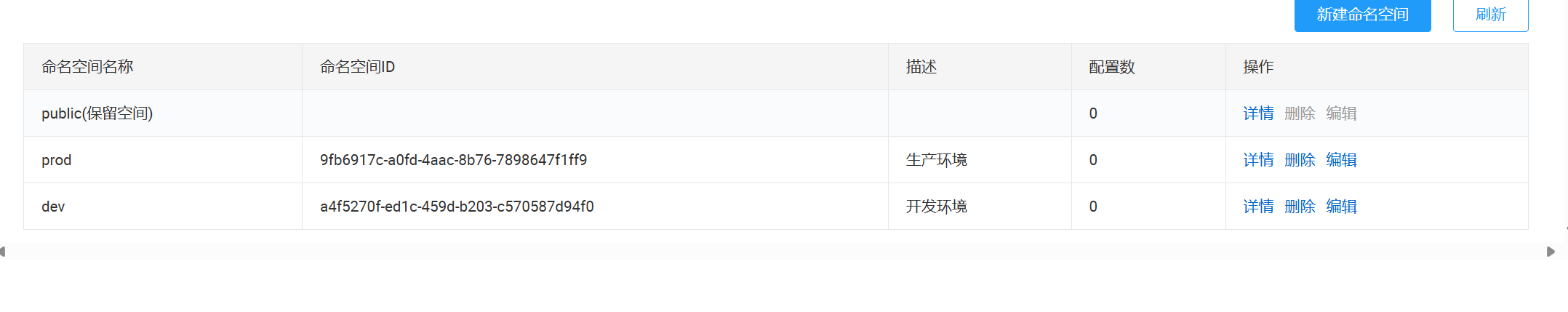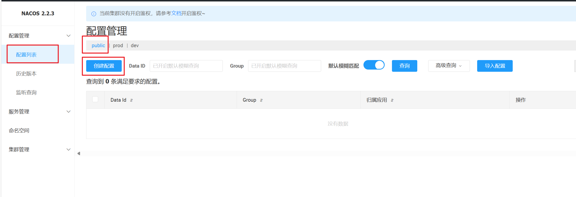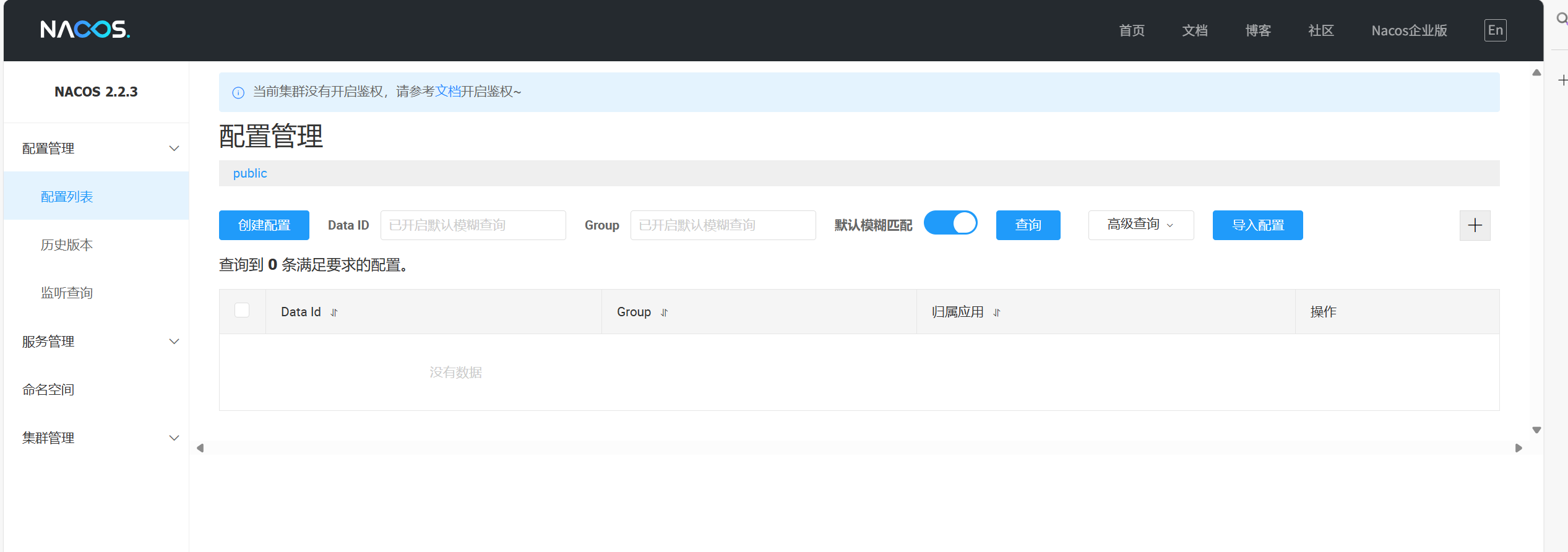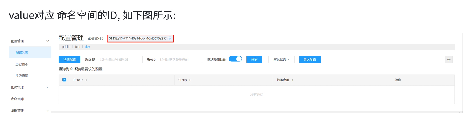 注意:配置管理的命名空间和服务列表的命名空间,两者是隔离的,是分别设置的。默认都是 public。 服务管理命名空间配置 ≠ 配置管理的命名空间。