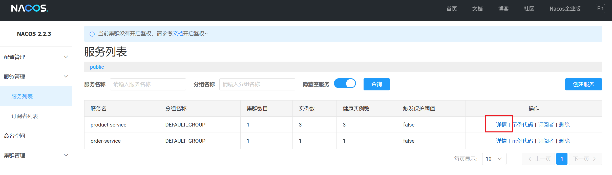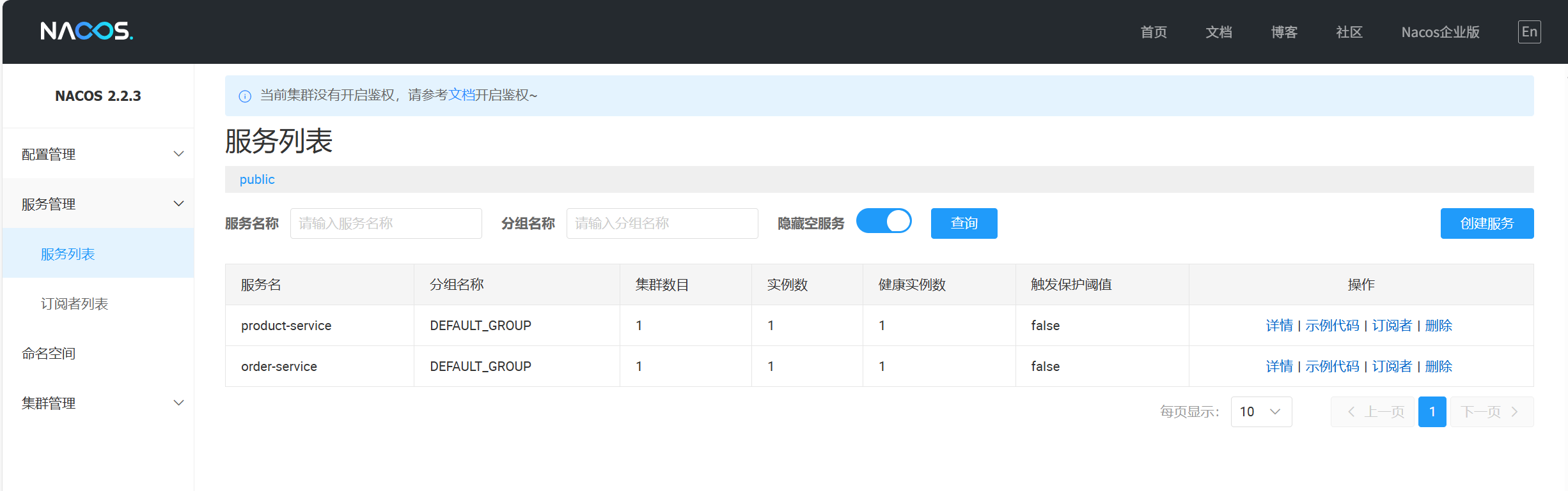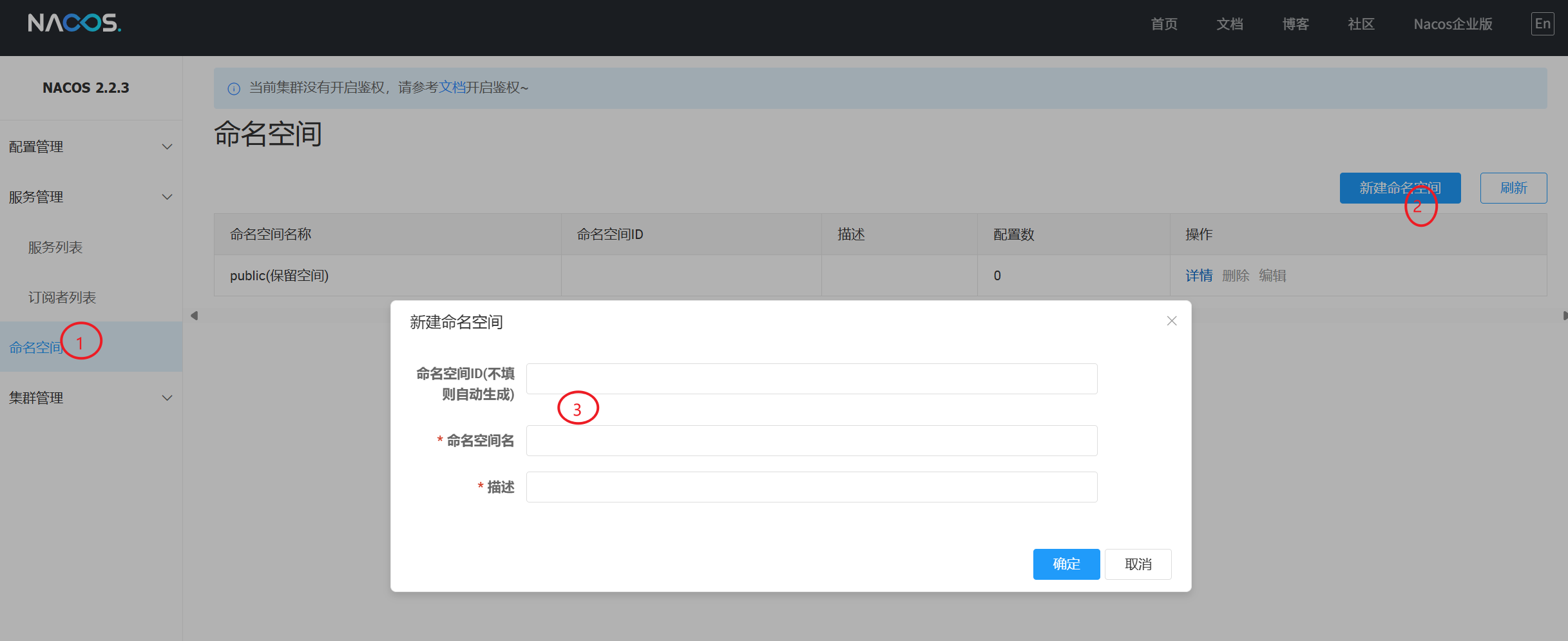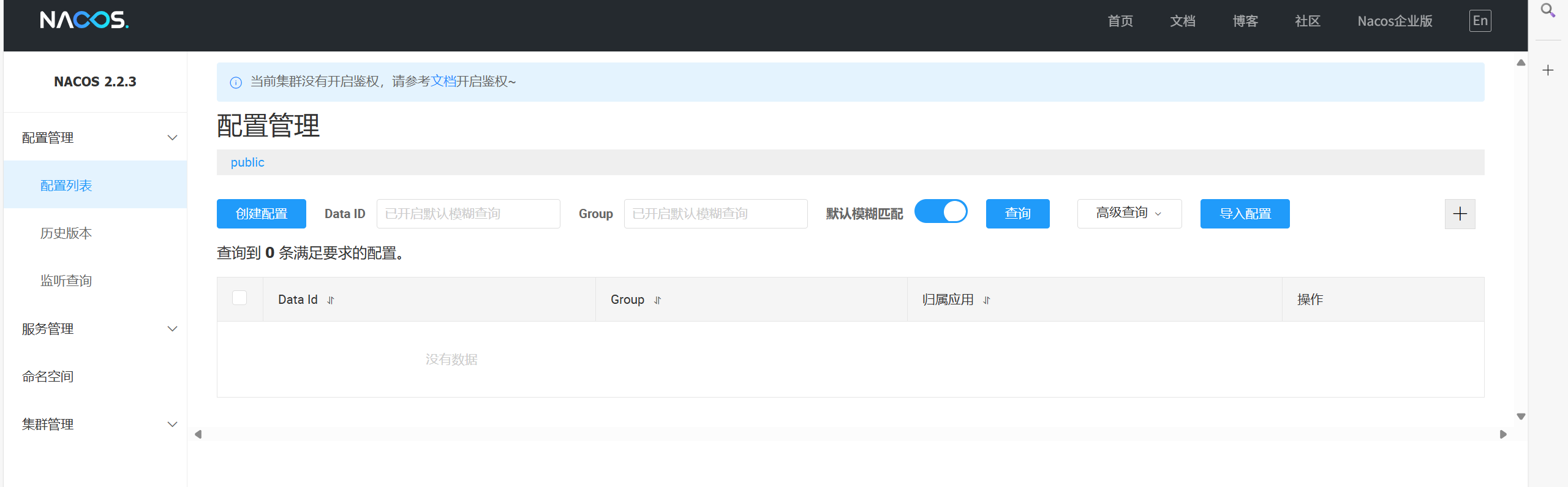 注意:配置管理的命名空间和服务列表的命名空间,两者是隔离的,是分别设置的。默认都是 public。 服务管理命名空间配置 ≠ 配置管理的命名空间。