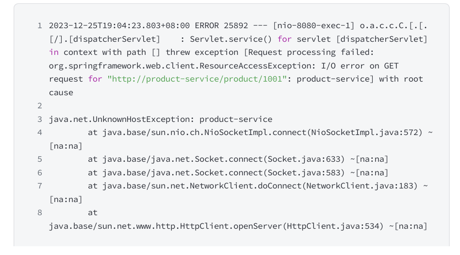 启动 order-service 和 product-service 后,进行一次查询,观察 order-service 日志