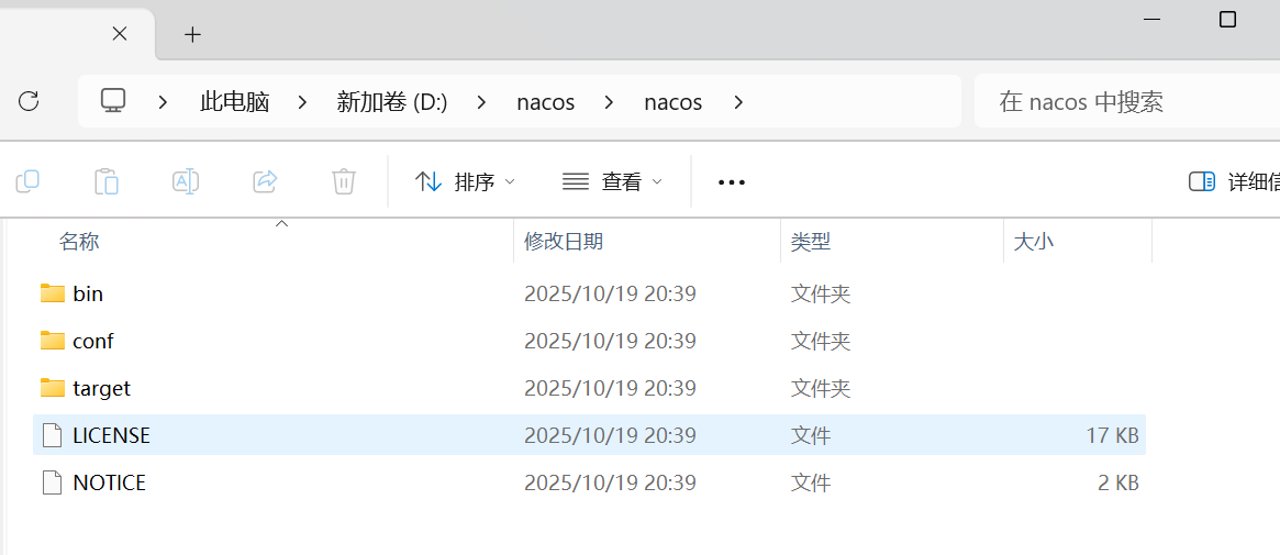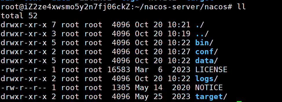 targert:存放 Nacos 应用的相关 jar 包