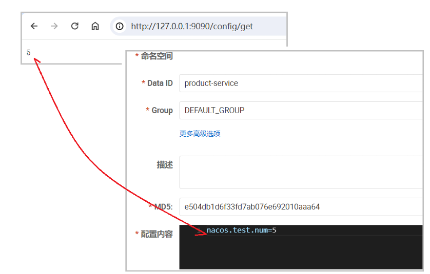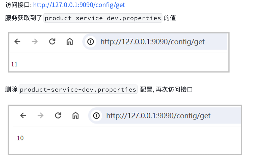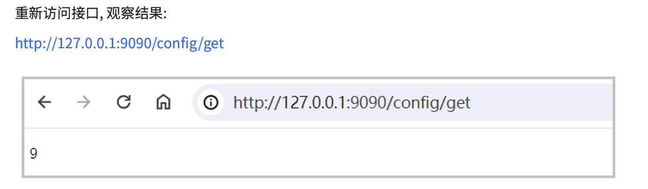 重启服务,访问接口:127.0.0.1:9090/config/get