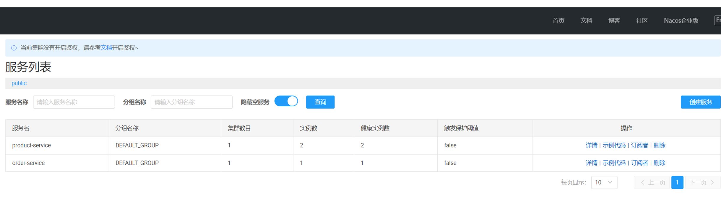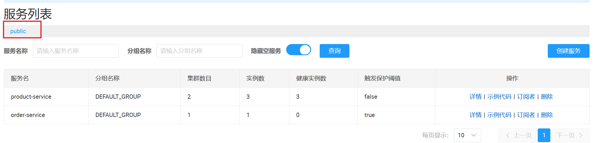 默认环境下,所有服务都在同一个 namespace,名为 public