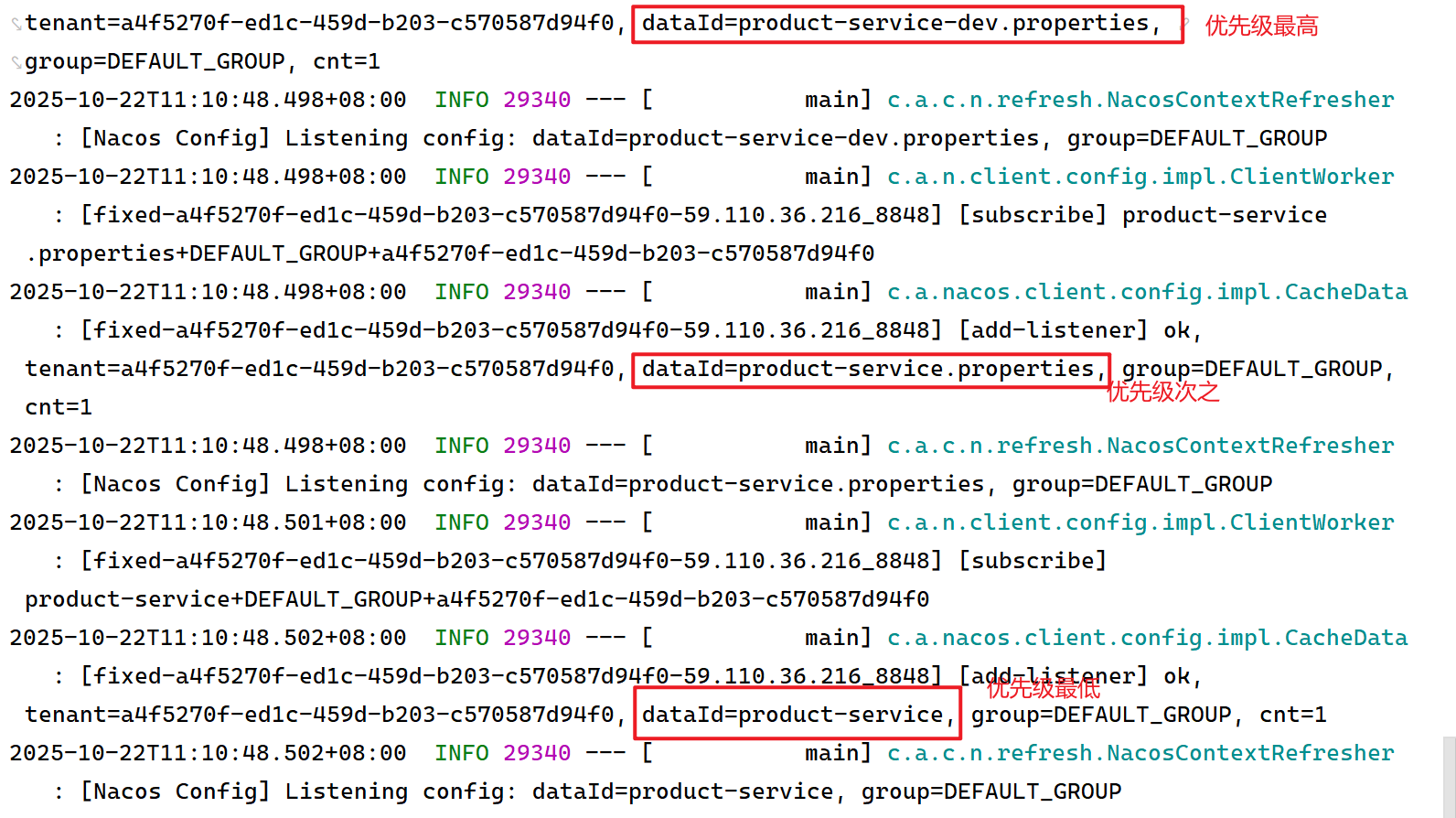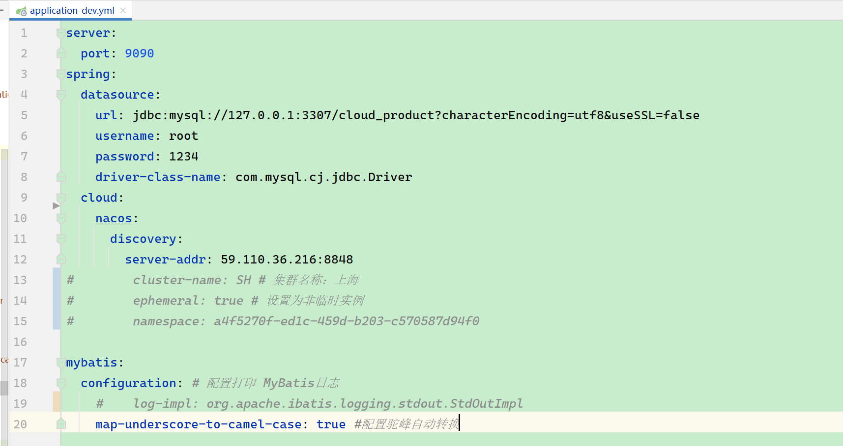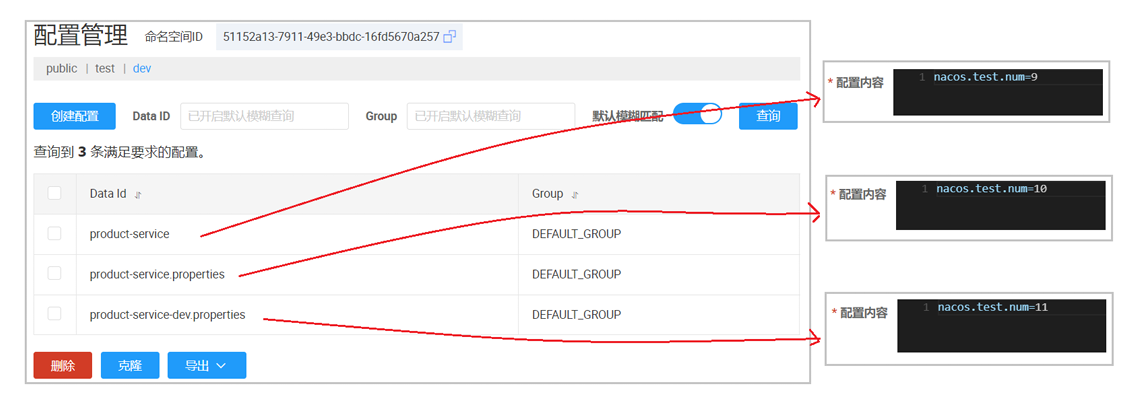 这里的 namespace 与 nacos 中提供的命名空间 ID 需要保持一致~