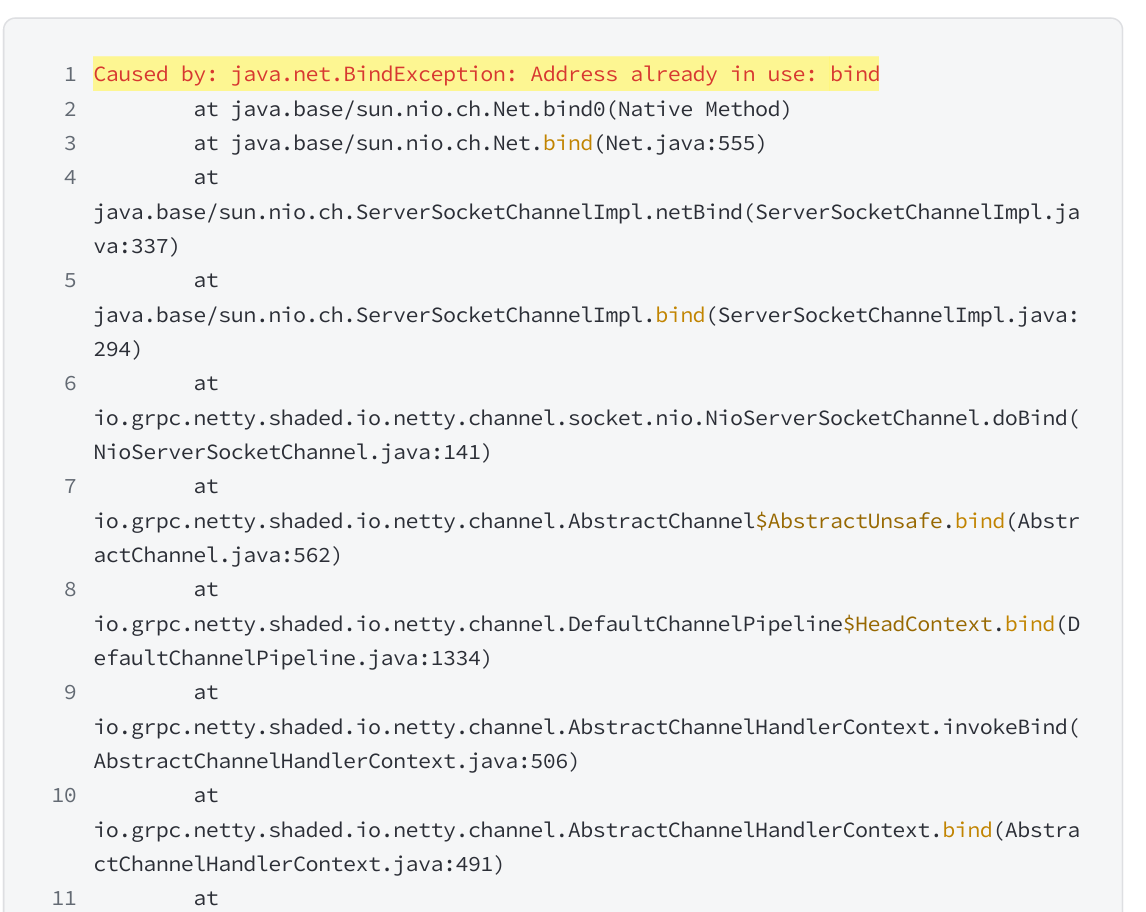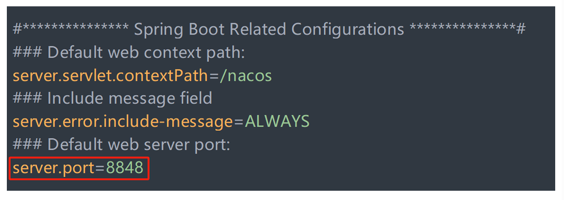 Nacos 的默认端口号为 8848,如果该端口号被其他应用占用,启动也会报错: