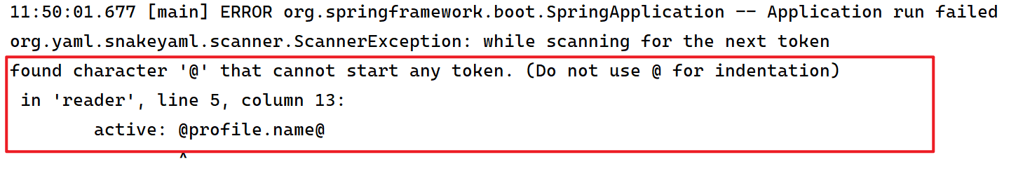 当我们添加完上述配置后,利用 maven 的 package 进行打包时,可以正常完成打包,但是当选择 dev 进行本地运行测试的时候,出现报错:
