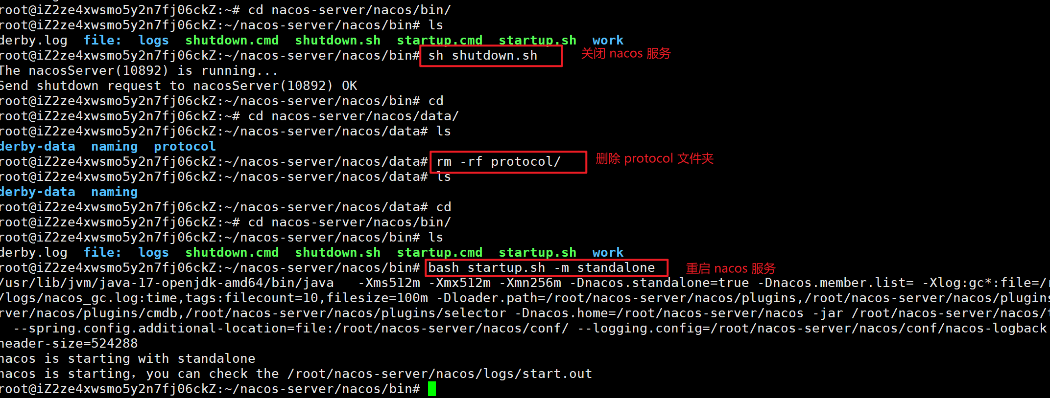 启动 Nacos,启动前最好先把 data 数据删除掉~~