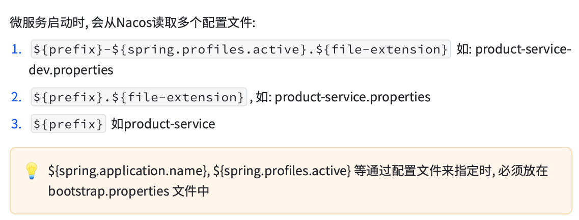 prefix 默认为 spring.application.name 的值,也可以通过配置项 spring.cloud.nacos.config,prefix 来进行配置