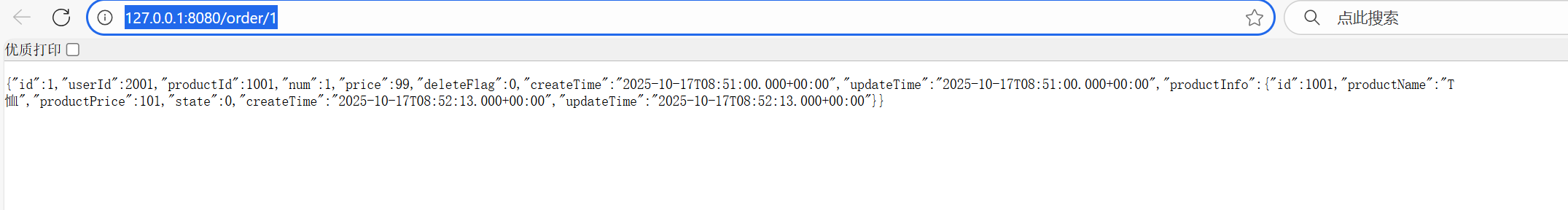 测试接口: IP:8080/order/1