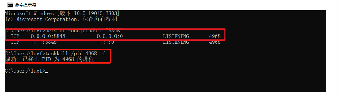 - 关闭端口号为 8848 的进程: