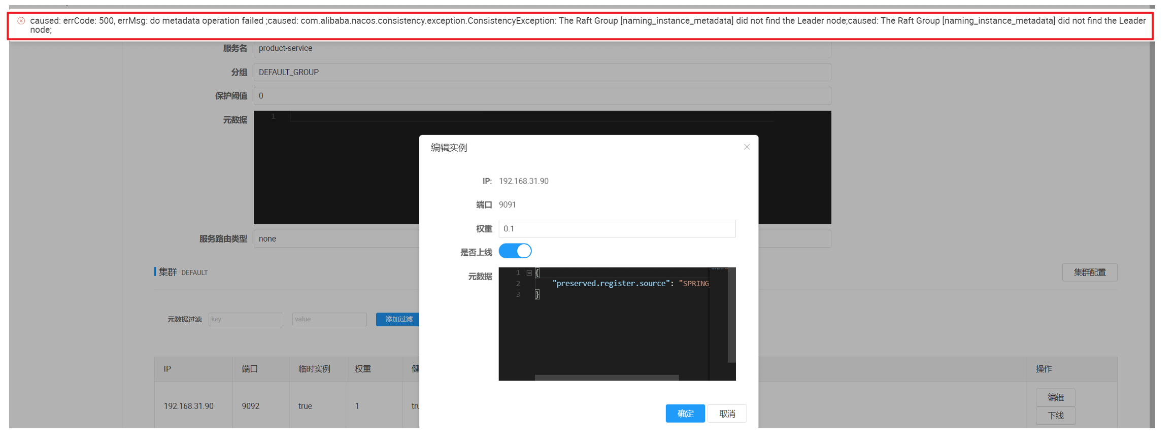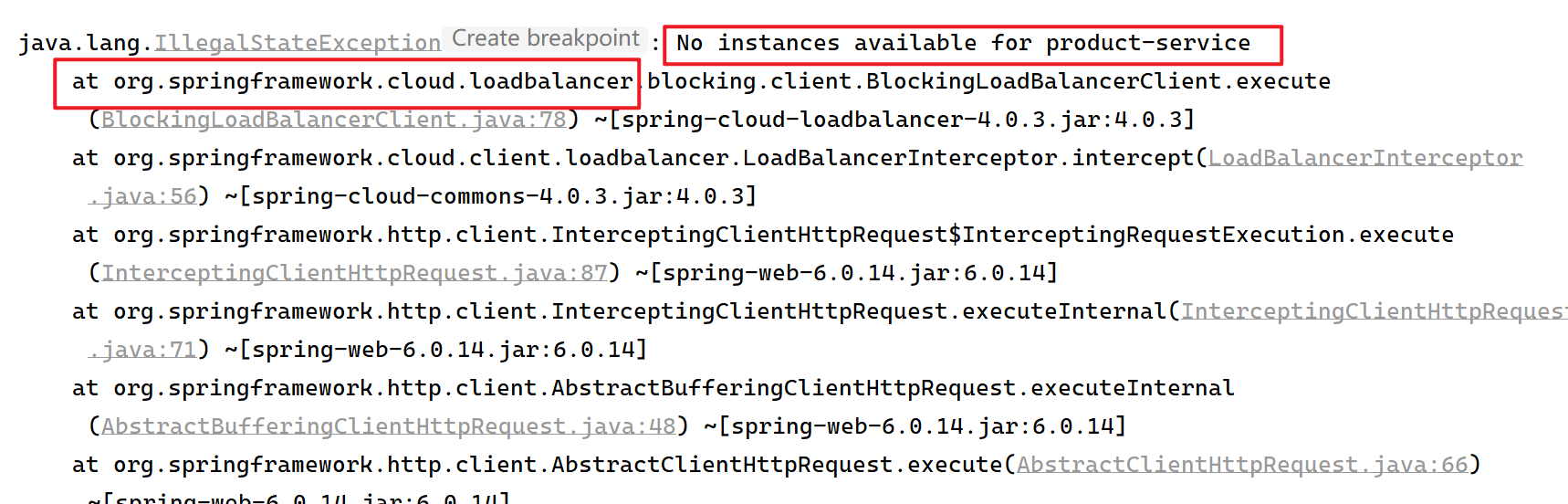 报错信息如下:没有 product-service 实例