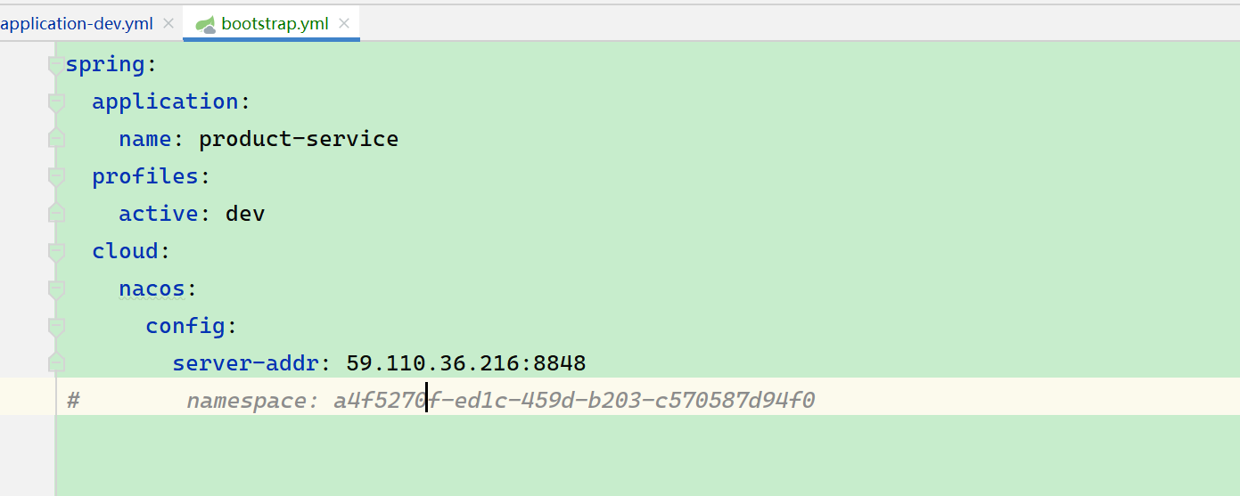 Nacos 配置管理的命名空间依然在 bootstrap 文件中进行配置