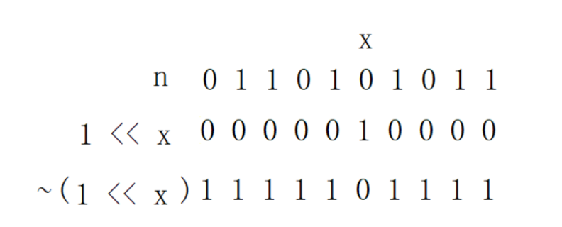 要想将某一位修改为0,那么就让这一位 & 0即可,但是怎么得到仅是这一位为0的数字呢??