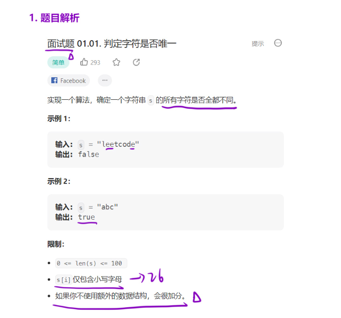 长度优化判断 :由于小写字母只有 26 个,若字符串长度超过 26,必然存在重复字符,直接返回