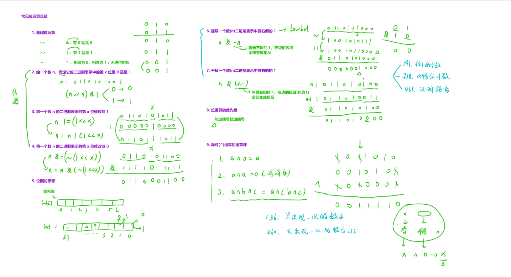 0异或结果为该数字本身(如a ^ 0 = a) - 异或运算满足交换律和结合律(如