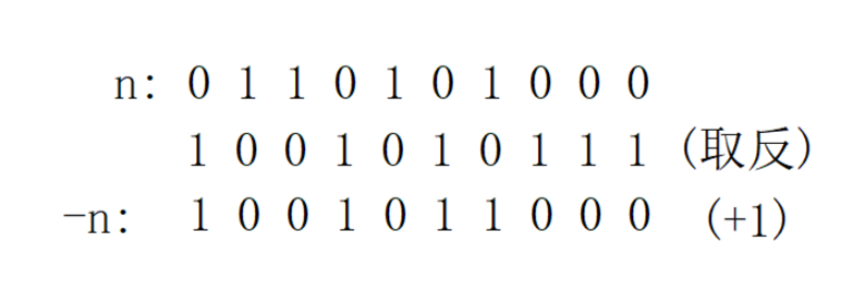 这样我们会发现,n与-n相比,原数最右侧的1的左边变成原来相反,右侧则不变,还是0