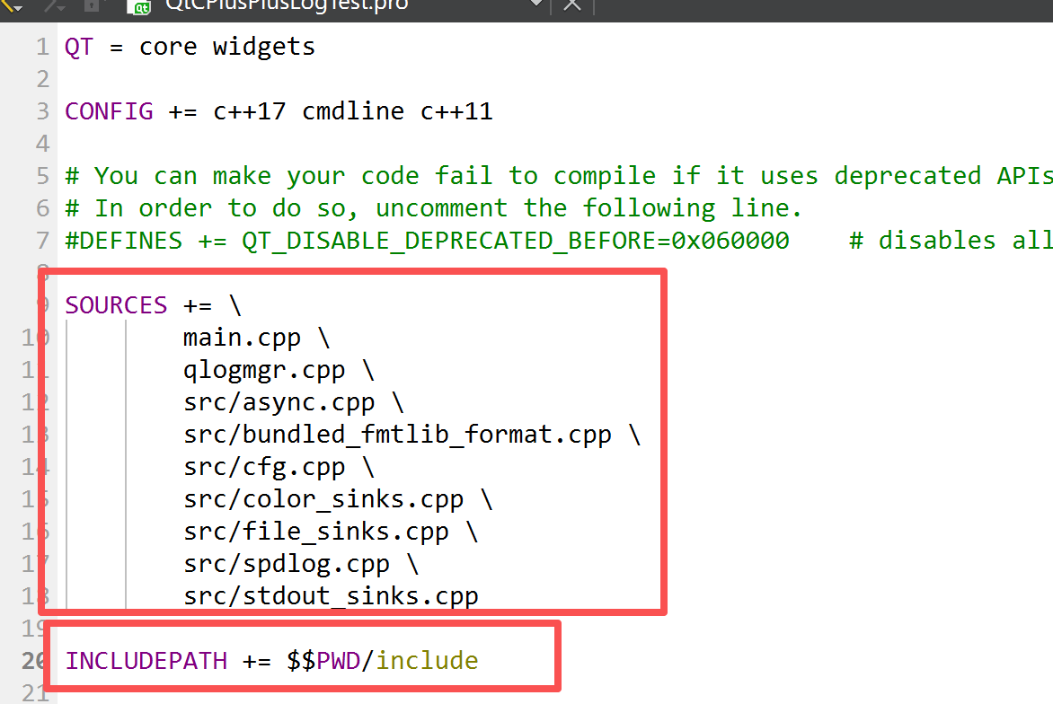 参考文章:Qt以直接包含源码的方式引用spdlog