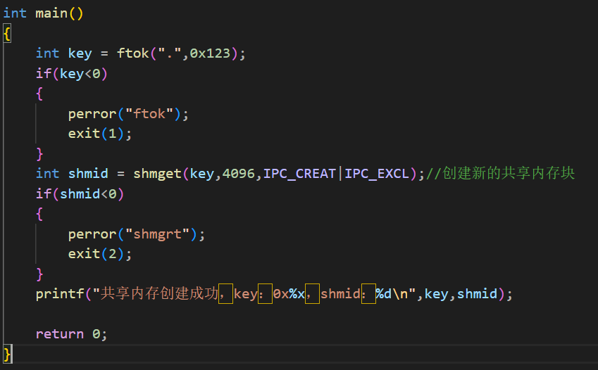 shmflg:权限标志,如 IPC_CREAT | 0666