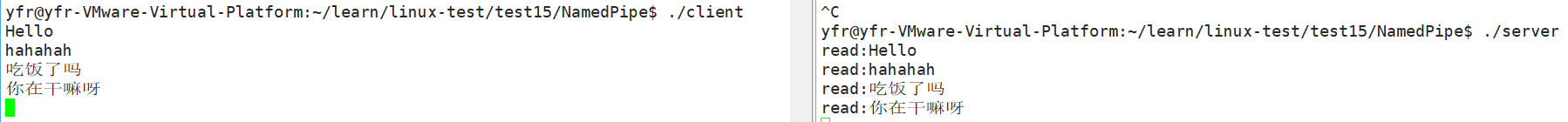 这是不是很像我们平时发消息?只不过我们没法回复信息,那么再使用另一个管道让client端接收server端接受信息后的回应就可以初步实现进程相互通信了,大家可以自己试一试哦!