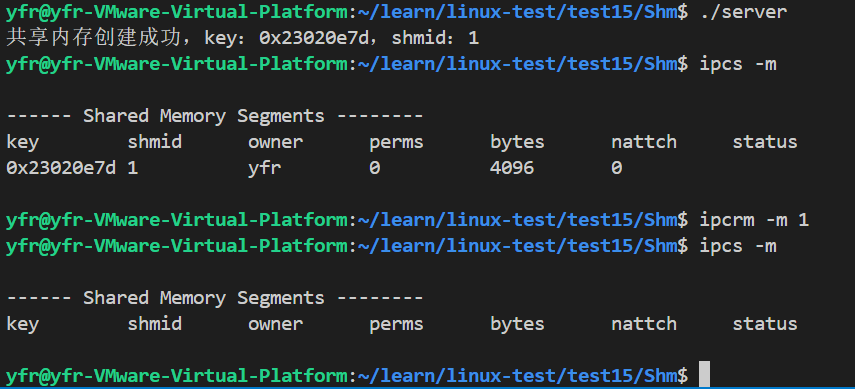 持久性:创建后一直存在,直到显式删除或系统重启,所以我们创建共享内存后要记得及时删除