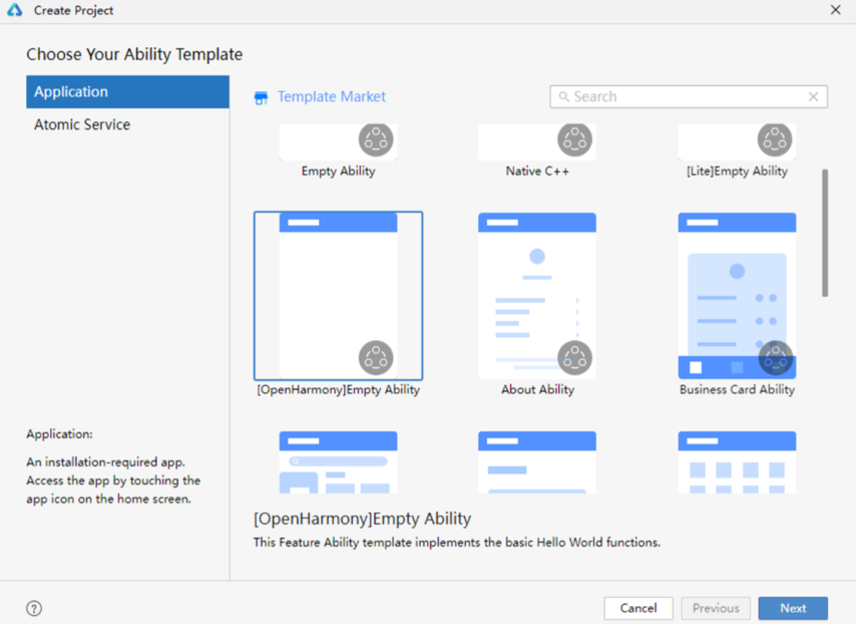 在 DevEco Studio 中,选择 File > New > Create Project ,模板选择 Application > Empty Ability ,并勾选 Enable Super Device 以启用分布式能力。