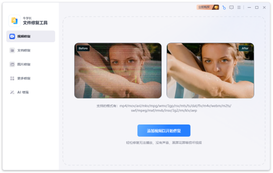 牛学长文件修复工具是一款功能强大的文件修复软件。它能快速批量修复视频、图片、文档、音频等多种文件,可解决如视频无法打开、图片模糊、文档损坏、音频声音异常等问题。该软件支持多种格式,操作简单。此外,它还具备在线预览、批量操作、安全可靠、修复成功率高等优势。