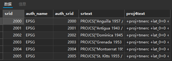 作用:存储所有支持的空间参考系统(SRS,即坐标系)的定义,是PostGIS中最基础的元数据表。