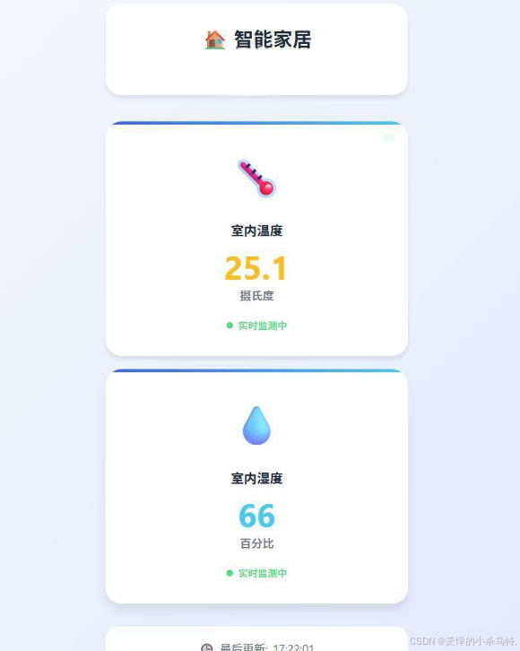 - 智能家居系统可对室内温度、湿度等环境数据进行实时监测与展示,让你随时掌握家中环境状况(未优化大致展示结果)。