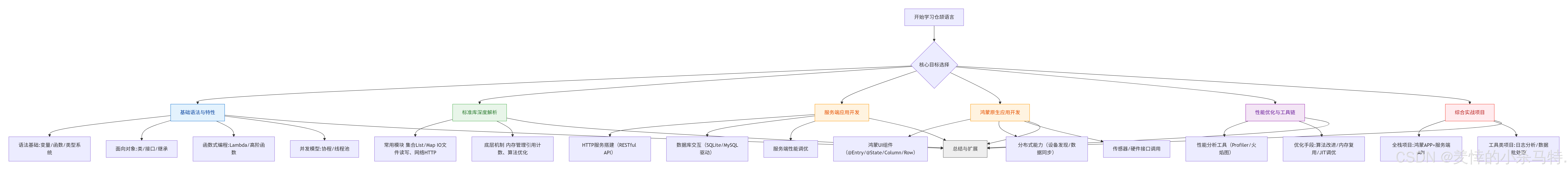 - 纵向关联:例如"并发模型"会直接影响"服务端性能"和"鸿蒙硬件交互";"标准库源码"的解析帮助理解"HTTP服务"和"UI组件"的底层实现;